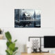 Experience the pristine beauty of nature with this mesmerising image of a winter landscape surrounded by a tranquil lake. The charming log cabin anchored in the landscape gives the image a cosy atmosphere that you want in your home. The picturesque details and vibrant colour palette perfectly capture the essence of winter, creating a calming atmosphere in any room. Give your home a piece of winter splendour and get this piece of art now!