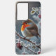 Winter Robin Perched on Frosted Rose Branch Samsung Galaxy S21+ Case