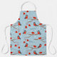 Add a cute seasonal touch to your holiday baking and cooking with this adorable custom blue kitchen apron. Apron has a festive pattern of robins on tree branches in the snow. There are also Santa Christmas hats and red mittens. Add your family surname or a first name for a personalised touch.