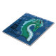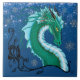 Blue, green and teal dragon profile portrait with snow falling all around. Black tribal rose.