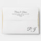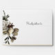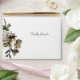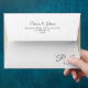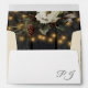 Winter elegant rustic white cream ivory flowers bouquet monogrammed wedding envelope with dark brown barn wood liner with string lights. ++++++++++++++ Matching invitation and stationery available in the collection.