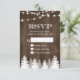 Winter Rustic Wood String Lights Pine Tree RSVP Reply Card.