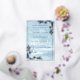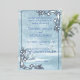 This elegant wedding invitation features a winter wonderland scene in shades of blue, complete with snow-covered pine trees. The silver frame adds a touch of sophistication to the design. Perfect for a winter wedding, this invitation will set the tone for your special day. Personalise it with your own special occasion.