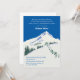 This modern card features the winter landscape of a ski resort. This beautiful scene shows snowy mountains, and a ski lift on an intense blue sky. Pine trees can be seen scattered around. This eye-catching yet elegant invitation is great for a ski lover or a ski enthusiast.
