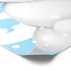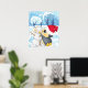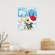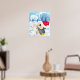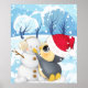 Decorate your kid's room or nursery with this adorable poster featuring a winter scene with a penguin building a snowman.
