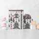 A beautiful and intricate pattern is displayed on a white background, featuring a variety of trees and birds. The trees resemble Christmas trees, with their classic triangular shape and adorned with delicate snowflakes. Among the trees, vibrant red cardinals can be seen perched or flying around, adding a pop of colour to the scene. The overall design gives off a wintery and festive vibe, perfect for the holiday season. The illustration is detailed and elegant, capturing the essence of a snowy forest decorated with Christmas cheer.