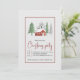Winter landscape with trees, a house and snowfall Christmas party Invitation.
