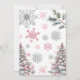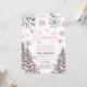 Seventy Birthday invitations with pink and silver snowflakes and pine trees. Ideal for your 70th winter birthday party.