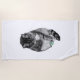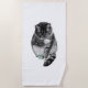 A snowy cat in elegant grey tones keeps warmth close at the spa or pool. Light shimmer texture, timeless calm, year-round charm.