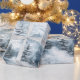 Winter Snow Blue White Christmas Pine Trees Wrapping Paper