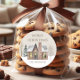 Winter Snow House Pine Tree Merry Christmas Name Classic Round Sticker