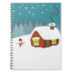 A snowy scene featuring a cozy-looking home with a snowman sitting outside. This design is perfect for Christmas cards, ornaments, and other holiday decorations! It can be customized or personalized by adding your own text or images.