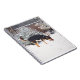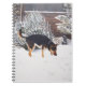 This original Christmas image is a painting of a very cute little black and tan mixed breed dog, he’s sniffing and scratching at the thick layer of freshly fallen snow that he’s just discovered for the first time in the garden. This little dog is named Eddie, he’s a german shepherd cross breed dog and he’s enjoy the cold weather in his winter garden. In the background of this festive picture you can see a little grey garden gnome quietly sitting and reading his book at the side of the small snow covered frozen pond. There’s also lots of  snow covered  garden shrubs and an old wooden shed in Eddie’s garden,  all these add interest to this lovely little festive Christmas scene