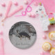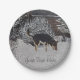 This original snow scene image on this cute dog paper plate is from a painting of a little black and tan mixed breed dog, he’s sniffing and scratching at the thick layer of freshly fallen snow that he’s just discovered for the first time in the garden. This little dog is named Eddie, he’s a german shepherd cross breed dog and he’s enjoy the cold weather in his winter garden. In the background of this scenic snow picture you can see a little grey garden gnome quietly sitting and reading his book at the side of the small snow covered frozen pond. There’s also lots of snow covered garden shrubs and an old wooden shed in Eddie’s garden, all these bits and bobs add interest to this lovely little winter snow scene on this customisable christmas paper plate. You can personlise this christmas plate with your own text. The original painting of Eddie in the snow is tilted "First Snow" and is an acrylic painting. This image has been digitally enhanced to give it a engraved effect.