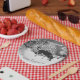 This original snow scene image on this cute dog paper plate is from a painting of a little black and tan mixed breed dog, he’s sniffing and scratching at the thick layer of freshly fallen snow that he’s just discovered for the first time in the garden. This little dog is named Eddie, he’s a german shepherd cross breed dog and he’s enjoy the cold weather in his winter garden. In the background of this scenic snow picture you can see a little grey garden gnome quietly sitting and reading his book at the side of the small snow covered frozen pond. There’s also lots of snow covered garden shrubs and an old wooden shed in Eddie’s garden, all these bits and bobs add interest to this lovely little winter snow scene on this customisable christmas paper plate. You can personlise this christmas plate with your own text. The original painting of Eddie in the snow is tilted "First Snow" and is an acrylic painting. This image has been digitally enhanced to give it a greyscale effect.