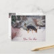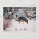 Winter snow scene with cute black and tan dog postcard