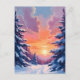 Winter Snow Sunset | Watercolor Landscape Painting Postcard
