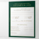 Elegant gold snowflakes and sparkle, green tri-fold wedding invitation with completely editable text. All of your details, information and response card on the same invitation.