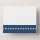 Bring touch of winter elegance to your event with this all-in-one wedding invitation and RSVP card. On the inside you will find the white silhouette of a delicate snowflake on a deep navy blue background above a section with some sample text that can be customised for your special day. The lower section of the invite features a removable, postcard sized piece that has some sample RSVP text sitting above a navy border with a pattern of snowflakes dancing across the bottom. Outside, a similar border of snowflakes on deep blue can be found below the areas where you would add stamps, standard, and return addresses for both the invitation as a whole and the returnable RSVP section. The flap used to fold over and seal the card has a single snowflake flower on a navy blue background with a sample set of initials that you can customise for a final personal touch. Be sure to check out the rest of the Winter Snowflakes in Navy set for other coordinating products, including return address labels.