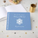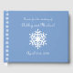 Create a lovely custom way for the guests of your winter wedding or event to leave their names and messages for the happy couple. A pastel periwinkle background is decorated with a white snowflake on both the front and the back. Along the spine, a pattern of these snowflakes creates a sweet accent. The front has a sample message, names, and date that can be customised to make this book unique for the event.