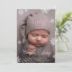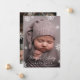 Photo birth announcement personalised with a big photo on the cover and three more photos on the back. Your baby's name in a white signature script along with their last name and birth stats. Beautiful new winter baby announcement that works for both boys and girls. Gender neutral winter baby announcement card featuring cute snowflakes.