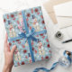 Winter Snowman Berries Snowflakes Blue Wrapping Paper