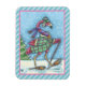 IN DEEP SNOW SMART BIRDS WEAR SNOWSHOES. PINK FLAMINGO WINTER MAGNET Blue Stripe Border ...Look For Matching Items Susan Brack Design