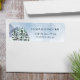 Winter wedding design featuring watercolor background depicting a snowy mountain landscape and pine trees in shades of blue and grey. The text can easily be personalised for a unique one of a kind design for your special day.A chic choice for elegant winter weddings in mountain or forest