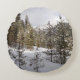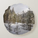 Winter Snowy Mountain Scene in Montana Round Cushion