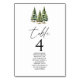 Winter Snowy Pine Tree Forest Wedding Table Number
