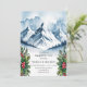 Celebrate the season with this elegant winter wreath design featuring a snowy mountain backdrop framed by pine branches, holly leaves, and clusters of red berries dusted with snow. Perfect for holiday cards, seasonal decorations, or festive gifts, this watercolor-style illustration captures the serene beauty of winter nature. Add a rustic, yet refined touch to your holiday collection.