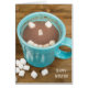 Hot chocolate drink with marshmallow happy face in turquoise mug for winter solstice