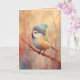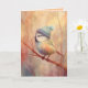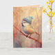Rendered in delicate pastels and airy brushstrokes, this songbird wears a light blue winter cap while resting among bare branches. The gentle color palette and soft textures create a calm, peaceful mood—perfect for winter greetings, sympathy notes, or thoughtful correspondence.