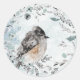 Winter Sparrow Dusty Blue Greenery Wreath Classic Round Sticker