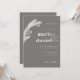 Winter grey invitation featuring a spruce branch in white with two spruce cones.