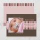 "Winter Stripes" brown/pink photo birth announcement. Personalize this modern and stylish photo postcard template with your baby boy's photo and details for a one-of-a-kind birth announcement.