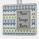 Layers of patterns inspired by designs found in Nordic sweaters create a wonderful winter feeling with snowflakes, mountains, and evergreen trees. Replace the placeholder image with your own photo to make this ornament your own.