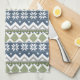 Layers of patterns inspired by designs found in Nordic sweaters create a wonderful winter feeling with snowflakes, mountains, and evergreen trees.