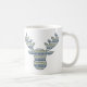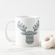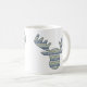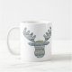 Layers of patterns inspired by designs found in Nordic sweaters create a wonderful winter feeling with snowflakes, mountains, and evergreen trees. A moose head masks the repeating pattern to create a cute and fun image for the cold months. This mug is available in a variety of colours, sizes, and styles including classic mugs and steins.