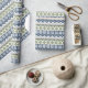 Layers of patterns inspired by designs found in Nordic sweaters create a wonderful winter feeling with snowflakes, mountains, and evergreen trees.