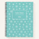 Winter themed notebook that features a modern white snowflakes vector pattern on a turquoise background. Personalise this festive and winter themed design with the name or text of your choice.