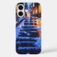 Beautiful anime-inspired phone case showing a snowy town street with footprints in snow and warm shop lights. Perfect for cosy and scenic winter designs.