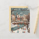This travel postcard showcases a serene and warm illustration representing Amsterdam canals and skyline during winter. It is a great and romantic postcard for travelers that plan to visit Amsterdam or for those who travelled Amsterdam and sending a postcard to their family or friends.