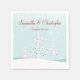 A sweet design for personalised paper napkins for a winter wedding featuring white winter trees with red Christmas balls with icicles and snowflakes falling in the background. The colour of the text coordinates with the colour of the red baubles on the trees. Fully customisable for your own special occasion. This coordinates with the Winter Trees and Snowflakes Wedding Collection. If you need assistance with the customisation for your special day or would like this in a different colour combination or on products not currently offered with this design, please contact us through our WeddingBazaar store.