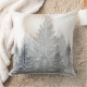Winter Trees and Sun, Frosty Black and White Square Throw Pillow -- A serene design with different variations of winter, frosty trees. A low winter sun is in the background giving a slight glow. The pillow can be used as a decor piece for a couch, chair or floor element.