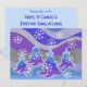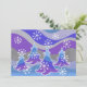 A modern, stylised winter landscape with frosted pine trees and sparkling snowflakes. Invitation with a purple, blue, silver, grey and white customisable design for you to personalise with your own text, images and ideas. The text can easily be changed using the template provided or click the 'Customise It' button to make further alterations. A digitally enhanced coloured pencil drawing by Jess Perry.