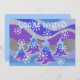 A modern, stylised winter landscape with frosted pine trees and sparkling snowflakes. Invitation with a blue, purple, silver, grey and white customisable design for you to personalise with your own text, images and ideas. The text can easily be changed using the template provided or click the 'Customise It' button to make further alterations. A digitally enhanced coloured pencil drawing by Jess Perry.
