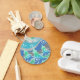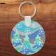 A modern, stylised winter landscape with frosted pine trees and sparkling snowflakes. Keychain with a green, blue, silver grey and white customisable design for you to personalise with your own text, images and ideas. Image created using a digitally enhanced coloured pencil drawing.