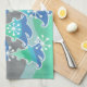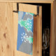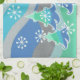 A modern, stylised winter landscape with frosted pine trees and sparkling snowflakes. Kitchen towel with a green, blue, silver grey and white customisable design for you to personalise with your own text, images and ideas. Image created using a digitally enhanced coloured pencil drawing.