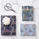 These winter or Christmas wrapping paper sheets have a watercolor art nature pattern with colourful trees on a background of midnight blue, teal green, or sky blue. Family and friends will love this modern, botanical design for holiday gift wrap, winter birthdays, or any other seasonal celebration.